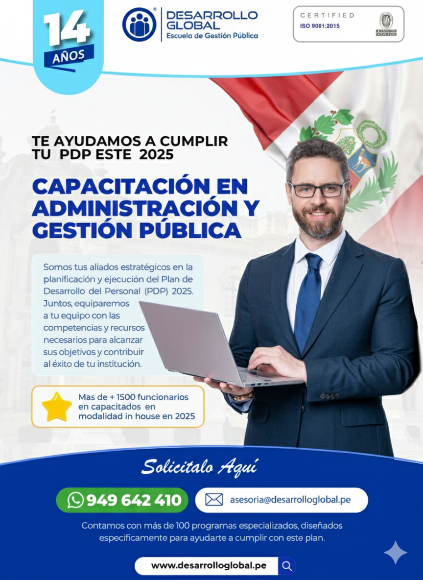 Si su institución busca optimizar procesos, garantizar el cumplimiento normativo y posicionar a su personal a la vanguardia de la gestión pública, una Capacitación InHouse con Desarrollo Global es la inversión más inteligente.